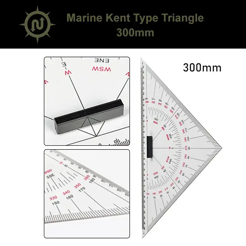 The Nautical Triangle Kent Type 300mm (IMPA Code: 371008) is a reliable marine navigation tool designed for precise chart plotting and course transfer. Commonly used onboard vessels and in maritime operations, this triangle is ideal for ship officers, marine surveyors, ship chandlers, and yacht navigators.